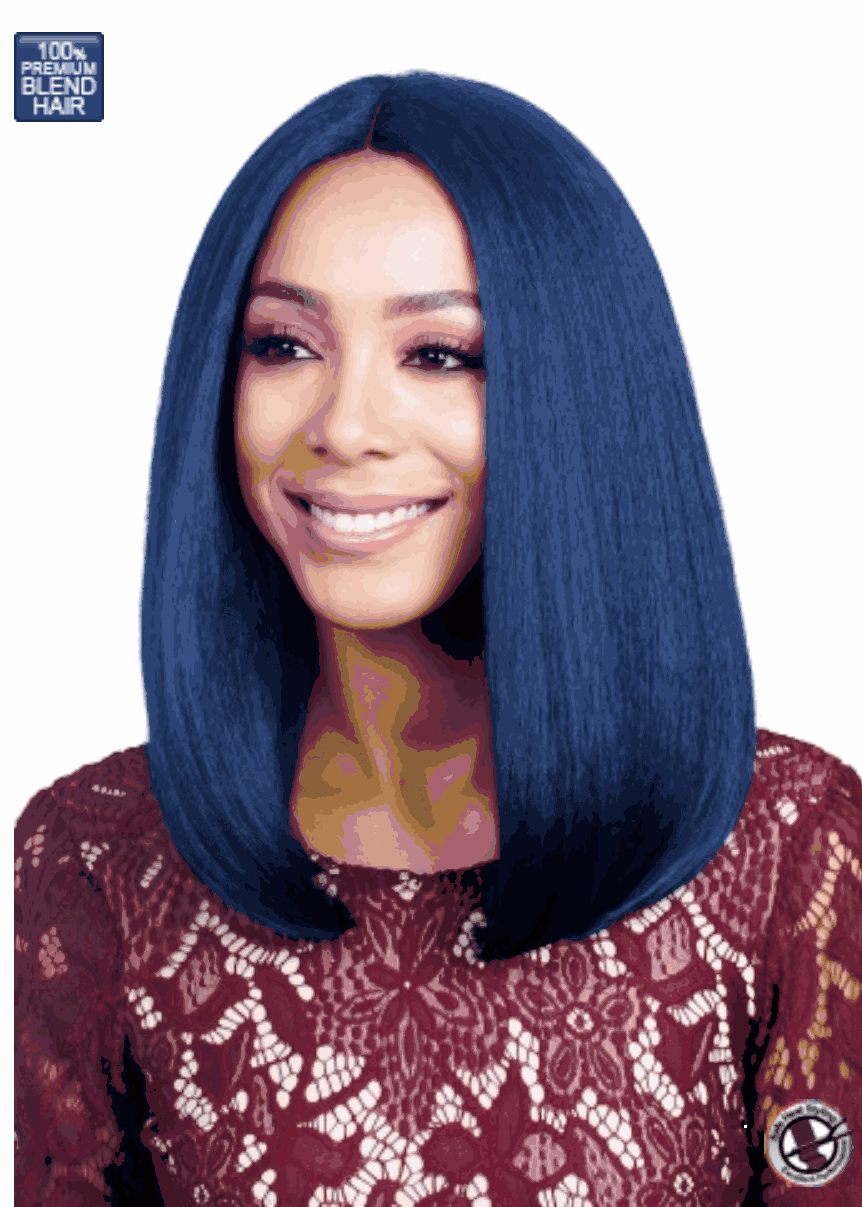 • Item: MBLF90 JUBA • Class: WIG • Material: Blend with 100% Human Hair • Color Shown: INVBLUE