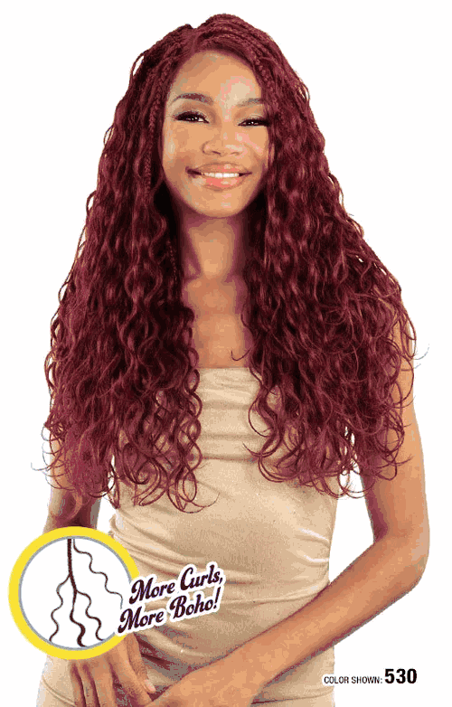 Experience the effortless beauty of our BOHO Braided Deep Curls Glueless Lace Wig. Designed with a hand-tied knotless braid technique, this wig offers a soft, natural finish that looks just like your own scalp. Made with a 13x5 whole lace base, it provides excellent breathability and a comfortable fit for all-day wear. The diamond-shaped sections mimic the latest trends, giving the braids a realistic and stylish touch. It is a boho braided + curly weaving versatile style that can be worn in a bun, half-up, or leave down for a flowing look perfect for everday styling.