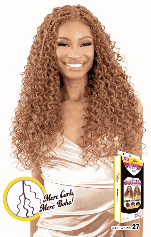Experience the effortless beauty of our Glueless Misty BOHO Box 24” Whole Lace wig featuring boho braided deep curls. Designed with a hand-tied knotless braid technique, this wig offers a soft, natural finish that looks just like your own scalp. Made with a 13x5 whole lace base, it provides excellent breathability and a comfortable fit for all-day wear. The diamond-shaped sections mimic the latest trends, giving the braids a realistic and stylish touch. It is a boho braided + curly weaving versatile style that can be worn in a bun, half-up, or leave down for a flowing look perfect for everyday styling.