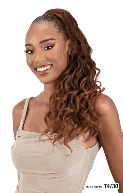 Drawstring Ponytail - Glow Girl Model Model Glow Girl Ponytail features a natural loose wave style with lightweight, voluminous texture. Perfect for effortless, everyday wear, this ponytail offers easy styling while maintaining a full, bouncy look.