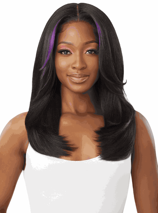 Laysha HAIR MATERIAL SYNTHETIC HAIR LENGTH 20" TEXTURE YAKI STYLE STRAIGHT LACE TYPE 13x6 LACE FRONTAL COLOR SHOWN DR99J/Rosy Spice,DRFF4/Golden Caramel,DRST Purple Dream