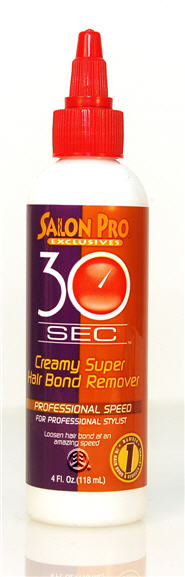 Salon Pro Exclusives 30 Second Creamy Super Hair Bond Remover is a safe and gentle product designed to loosen and remove hair bond and glue residue quickly and easily with the first application.