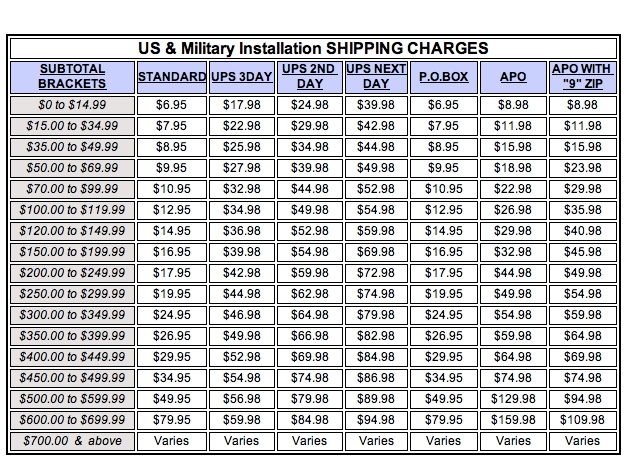 *Standard Shipping will ship via UPS or USPS at our discretion unless specified.