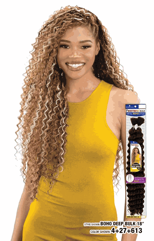 "Freetress Boho Deep Bulk 22" has full density from top to bottom to eliminate any waste of hair and to prevent shedding. Mix and match any Freetress hair with Freetress bulk hair for all boho and goddess styles!"